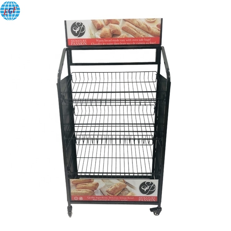 Free Standing Multi Tiered Metal Rack Bread Display Shelf For Bakery |